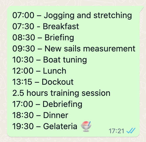 Wszystko zaczyna się poprzedniego dnia. Wieczorem wysyłałem na naszej grupie na WhatsApp’ie plan na kolejny dzień. Dzisiaj będzie wyglądać to tak: